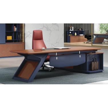 桌面采用美国进口0.6mm级樱桃木皮和胡桃木皮拼花饰面,实木封边;基材采用优质绿色环保(E1级)中密度纤维板,进过防虫、防潮,防腐及三次烘干蒸发处理,木材干燥至低于9%的含水率;油漆采用德国进口“易涂宝”油漆,甲醛含量小于0.3mg/L,达到国际E1级环保标准;五金件全部使用国际名牌广东原产法拉利品牌,通过欧洲严格的测试,保证长久顺畅使用
