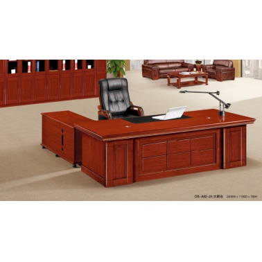 桌面采用0.6mm级樱桃木皮和胡桃木皮拼花饰面,实木封边;