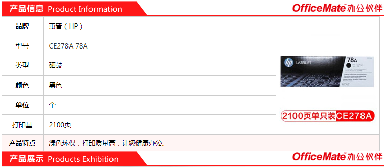 • 商品名称:惠普(HP)CE278A 78A 黑色硒鼓 适用P1566 P1606dn M1536dnf 打印量2100页